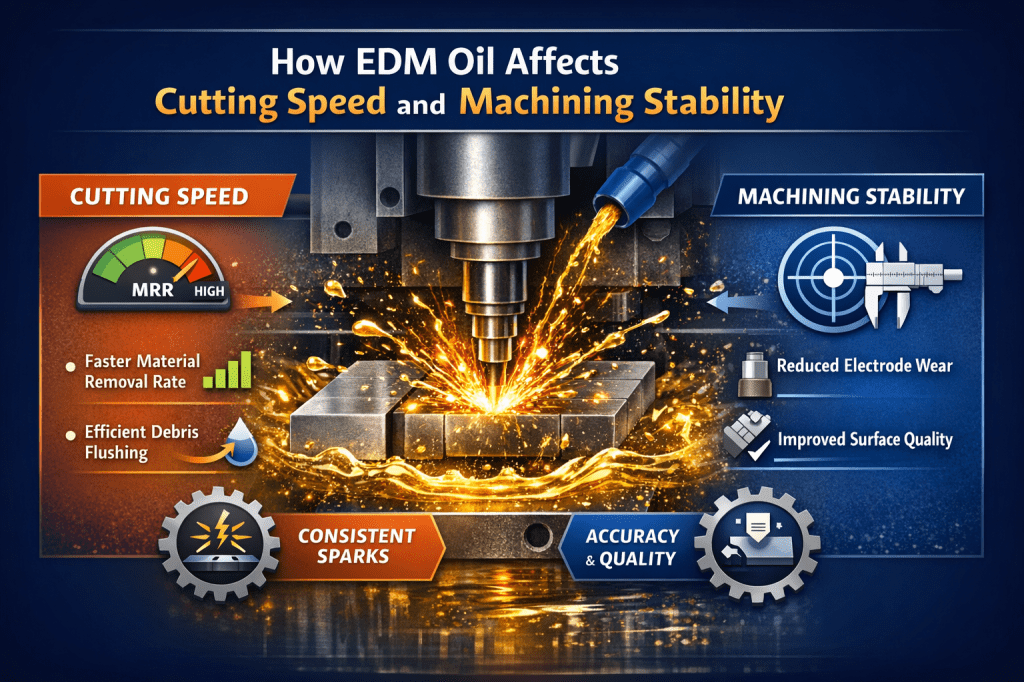 Electrical Discharge Machining (EDM) is a precision process where performance is driven not only by machine settings and electrodes, but also by the quality and characteristics of the EDM oil. Many shops focus on power parameters and tooling, yet overlook how dielectric fluid selection directly impacts cutting speed, machining stability, surface quality, and overall productivity.