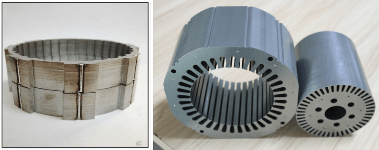 Motor cores are typically produced by processing and laminating thin sheets of electrical steel. This lamination reduces eddy current losses and prevents overheating caused by induced currents within the core.